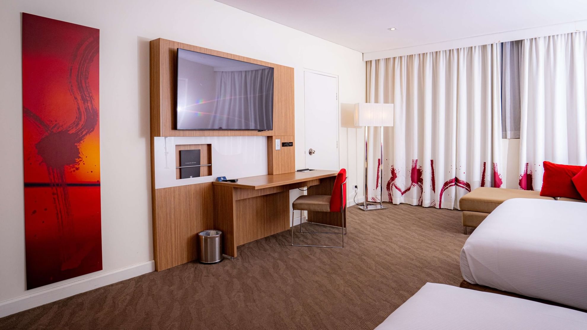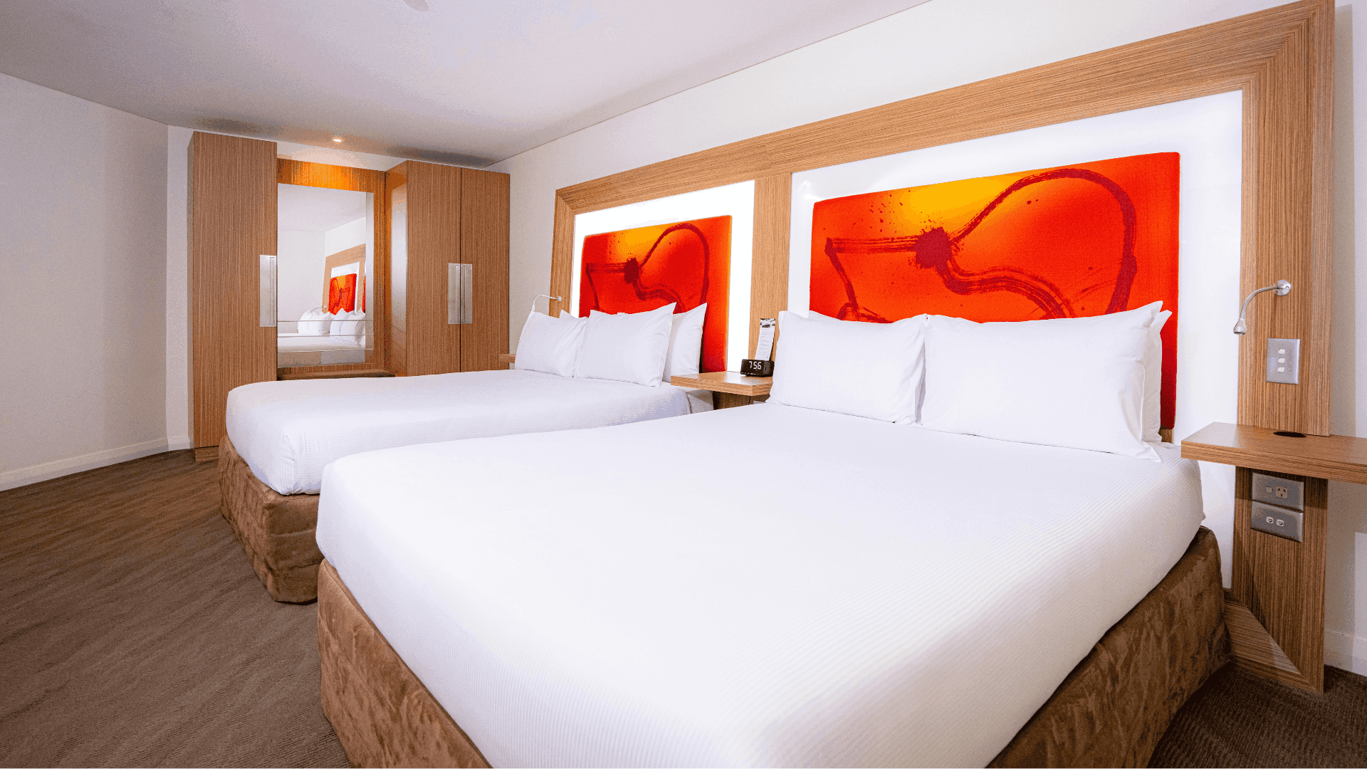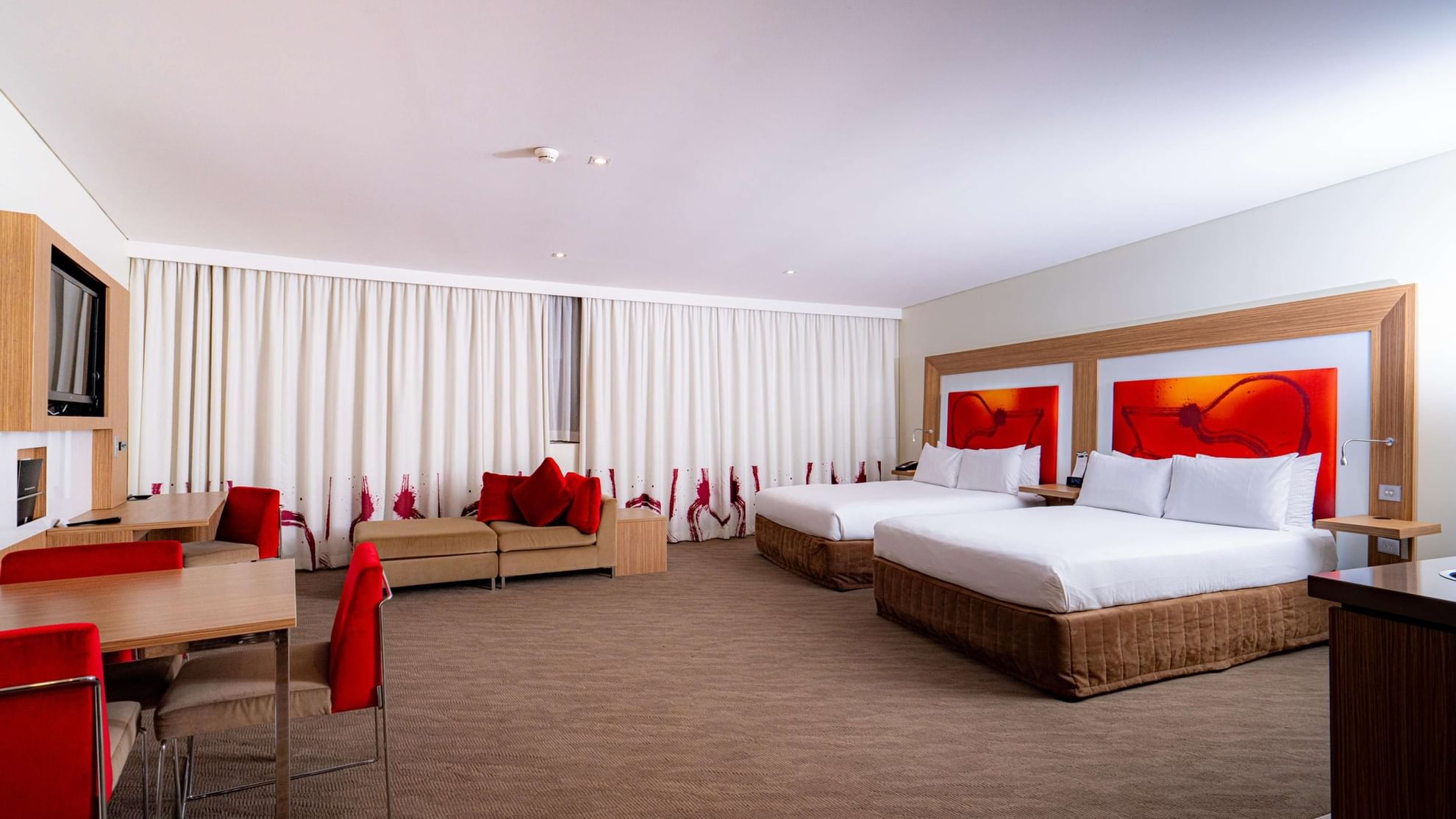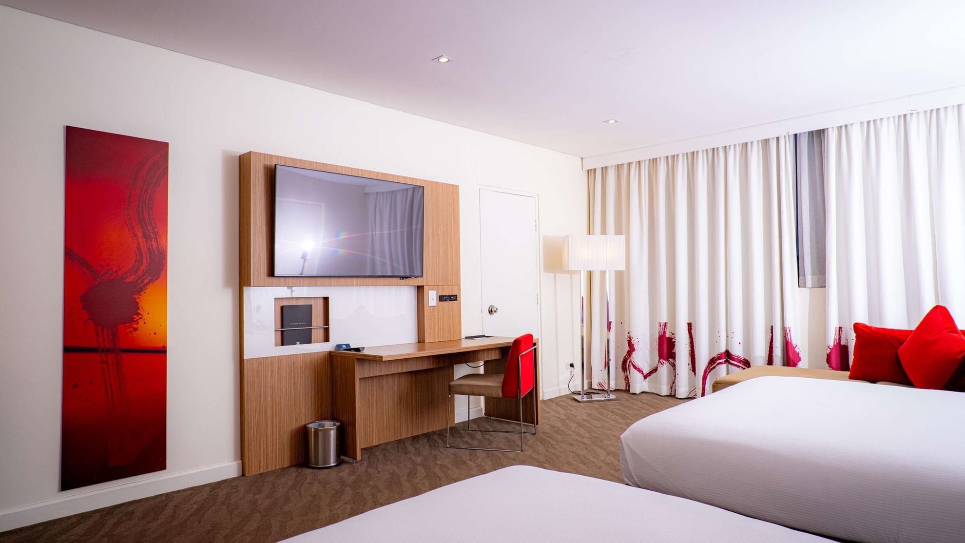 This spacious room features two Queen beds, work desk with connectivity panel, Wi-Fi connection, hair dryer, safe and tea/coffee. This room accommodates up to 2 adults and 2 children.